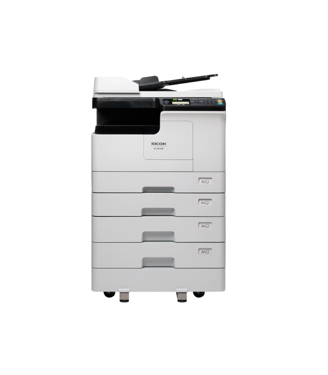 Ricoh M 2810N – profesjonalna drukarka wielofunkcyjna A3: 28 str./min, kopiarka, skaner do e-mail/FTP, procesor 500 MHz. Opcja WiFi, niska energochłonność.
