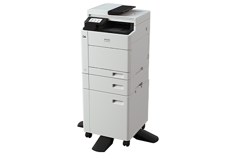 Pamięć tego urządzenia wynosi maksymalnie 6 GB RAM, a dodatkowo posiada dysk twardy o pojemności do 256 GB, co pozwala na przechowywanie dużej ilości danych. Drukarka jest łatwo dostępna dzięki interfejsom Ethernet i USB, a także obsługuje druk mobilny, w tym technologie takie jak Apple AirPrint™, Mopria, Google Cloud Print, NFC i Ricoh Smart Device Connector.