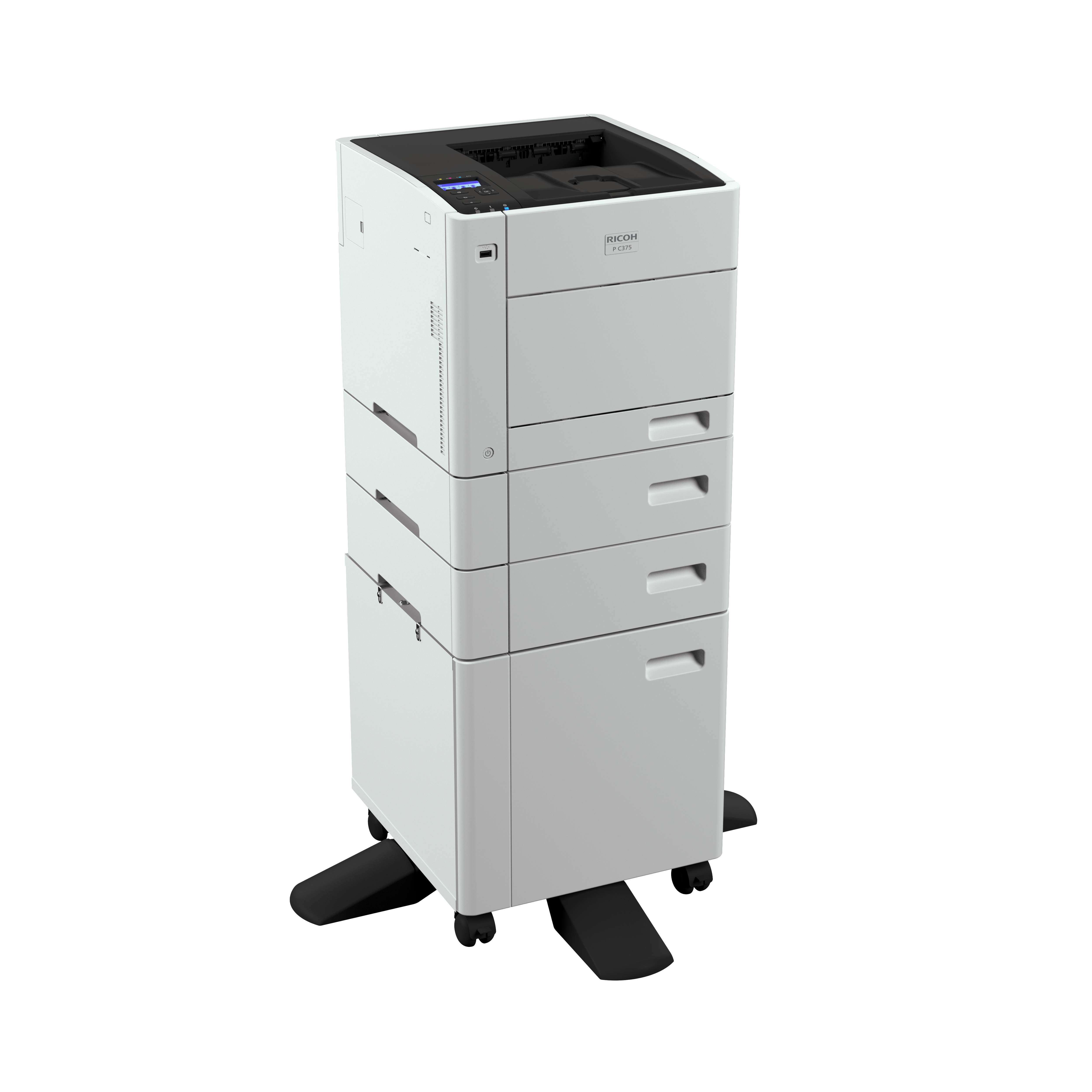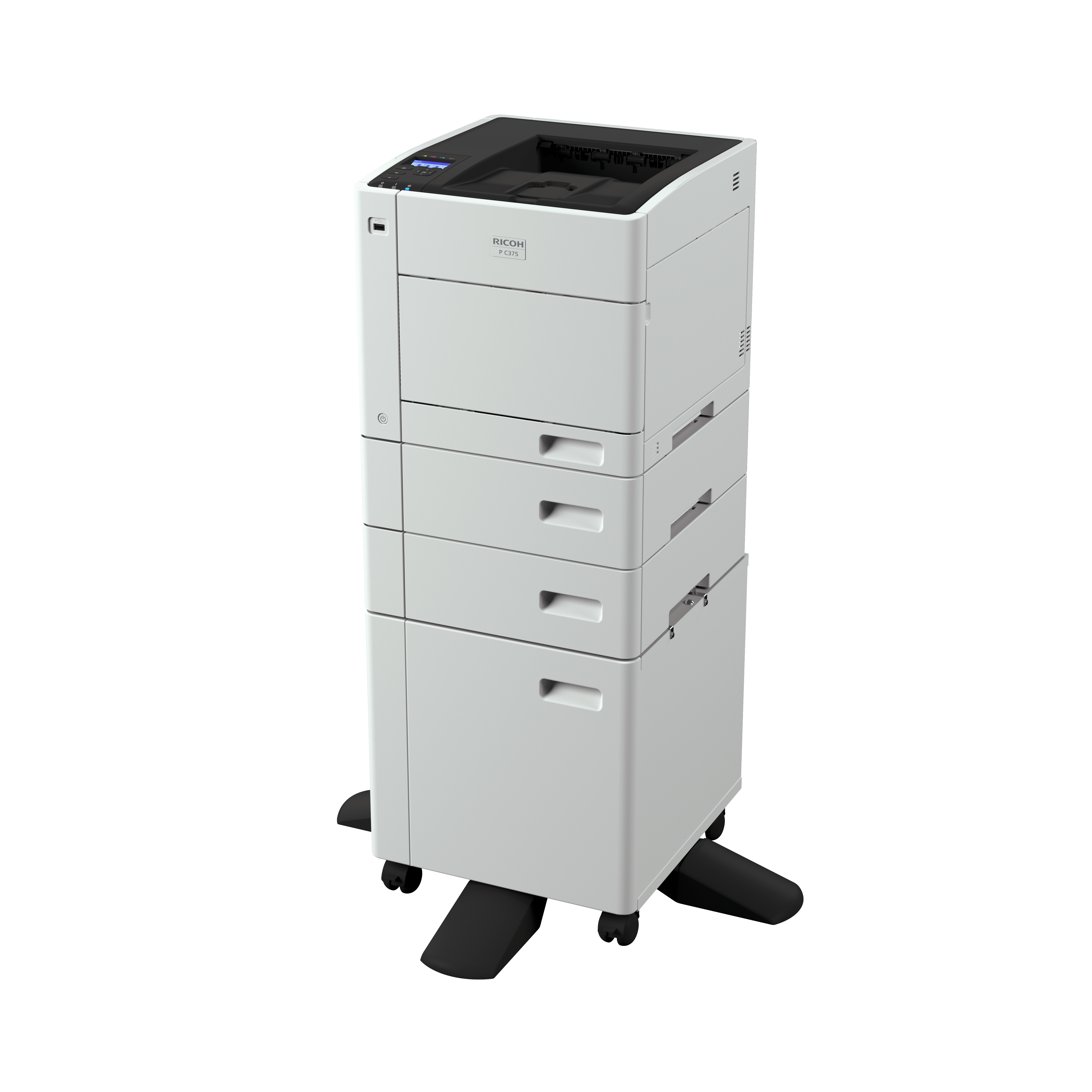 Ricoh P C375 to nowa drukarka kolorowa formatu A4, zaprojektowana do łatwego wpasowania w każde środowisko biurowe dzięki niewielkim wymiarom (410 x 429 x 360 mm) i wadze zaledwie 25 kg.