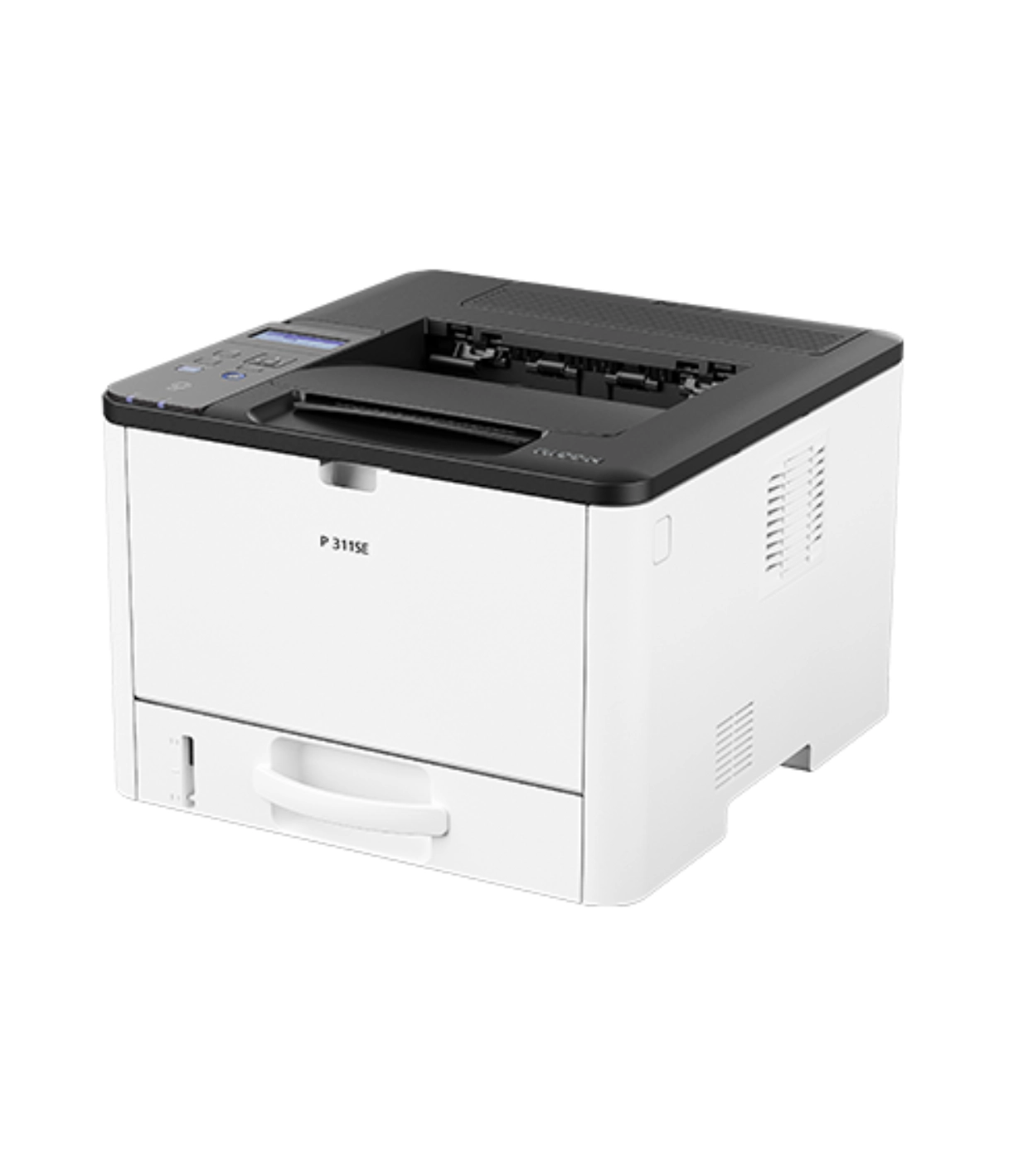 Ricoh P 311SE to kompaktowa drukarka formatu A4, zaprojektowana do łatwego wpasowania w każde środowisko biurowe dzięki niewielkim wymiarom (370 x 392 x 262 mm) i wadze zaledwie 13 kg. Zapewnia szybki czas nagrzewania (26 sekund) oraz ciągłą prędkość 32 str./min, z wsparciem dla gramatury papieru 52-162 g/m² z kaset, w tym A4, A5, A6, B5, B6. Niskie zużycie energii (TEC 0,408 kWh, tryb uśpienia 0,72 W) podkreśla jej ekologiczne atuty.
